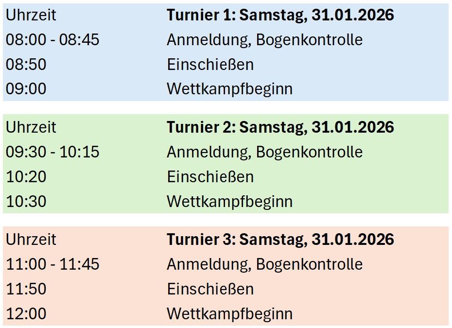 - Zutritt zum Schießbereich ist nur für angemeldete Turnierteilnehmer und anerkannte Trainer oder Betreuer gestattet. Für Angehörige und Zuschauer stehen Plätze auf der Tribüne zur Verfügung.