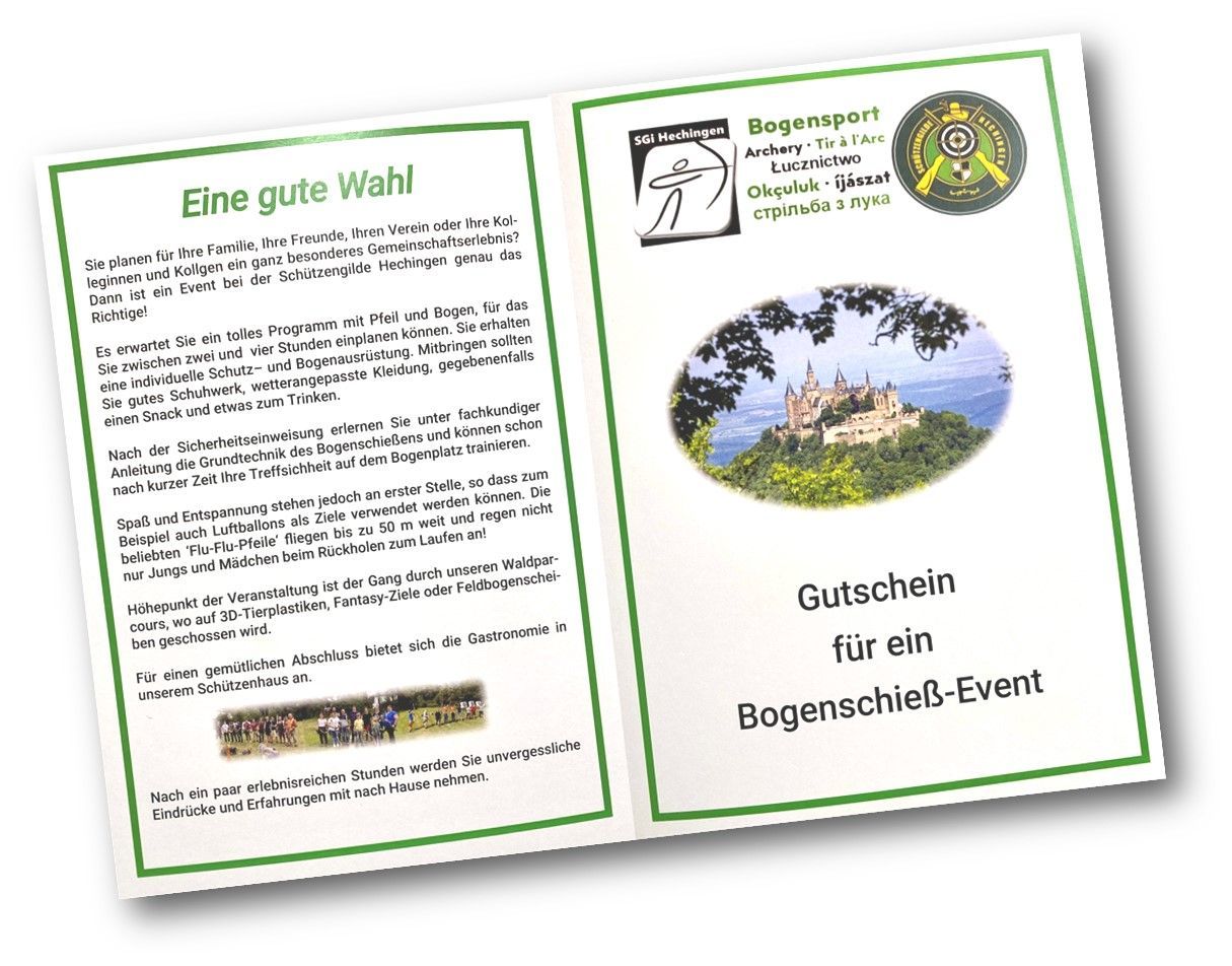 Gutschein für ein Bogenschieß-Event genau das Richtige! Gutscheine sind gegen Anzahlung vorab erhältlich.