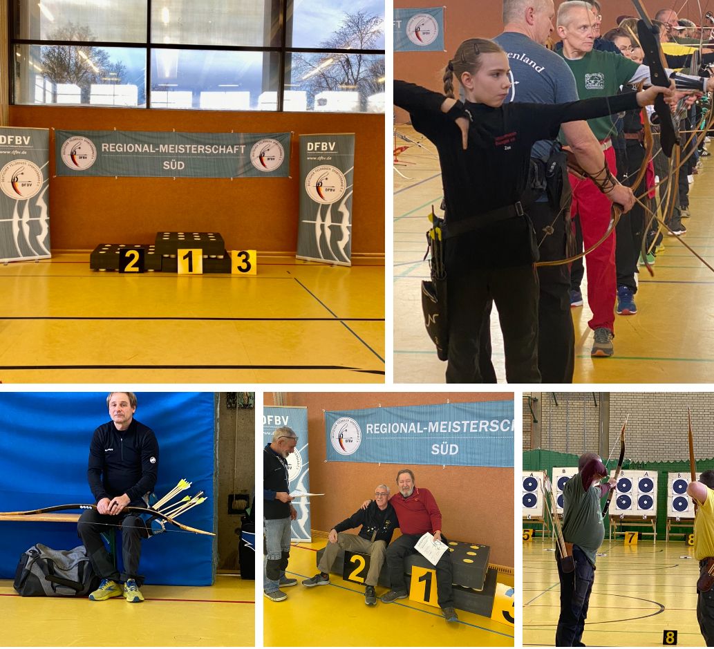 Am Nachmittag ging es mit dem ersten Durchgang der ‚Süddeutschen Regionalmeisterschaft Halle‘ weiter. Rund 120 Bogenschützinnen und Bogenschützen aller Altersklassen nahmen dem beliebten Bogensportturnier teil, das am Sonntag fortgesetzt wurde. Teilnehmen konnten neben Mitgliedern des DFBV auch Gastschützen. Am Start waren alle Altersklassen. Die Wettkampfdistanz betrug 18,21 Meter (60 Feet). Geschossen wurden 60 Pfeile.