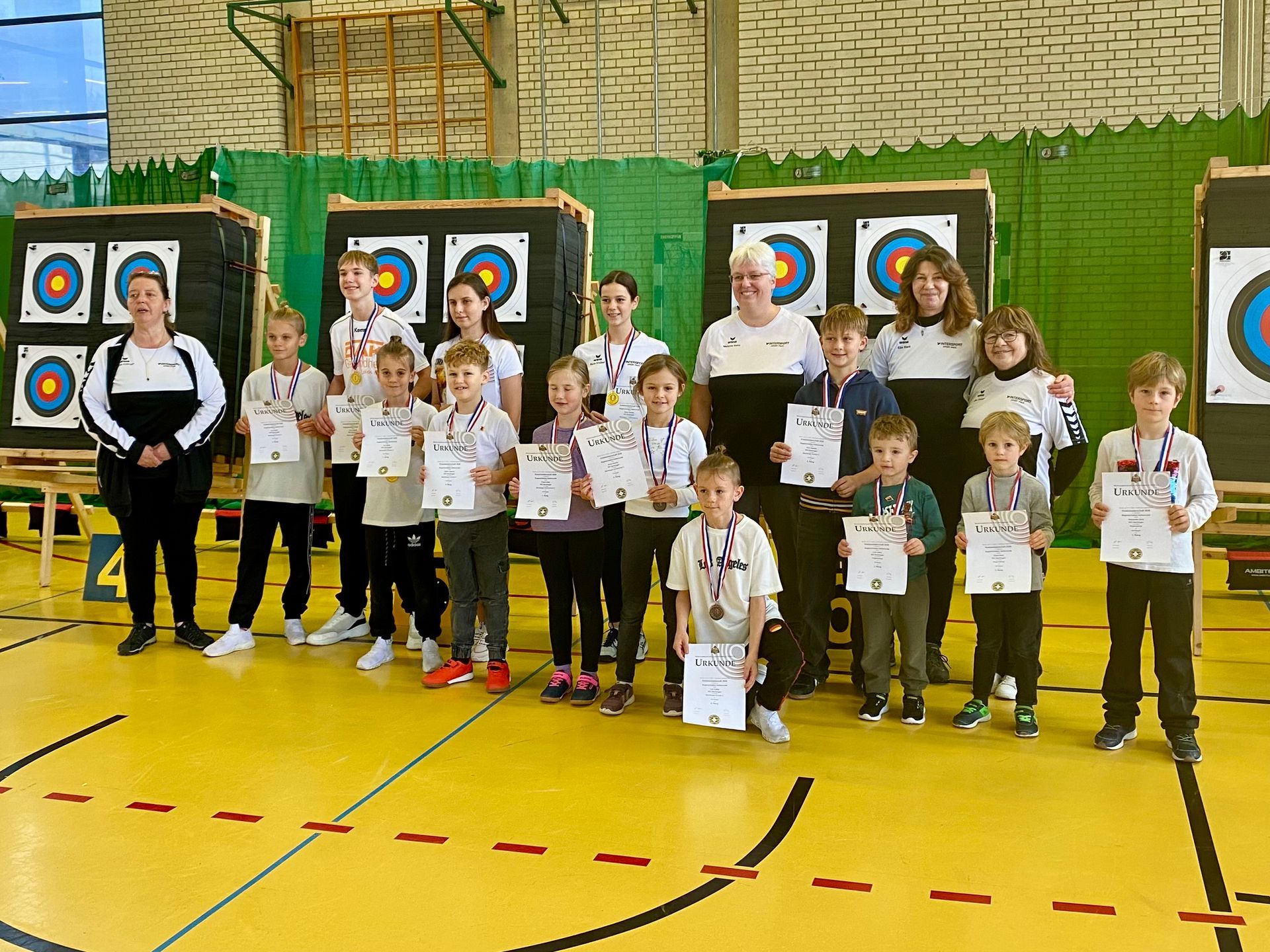 Auch bei den 38 erwachsenen Bogensportlern gab es viele zufriedene Gesichter bei der Urkundenübergabe.