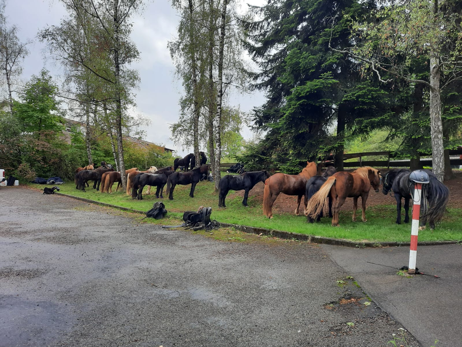 Ein nicht alltägliches Bild bot sich am Samstag vor dem Schützenhaus. Im Rahmen eines Island-Pferde-Treffens kamen zahlreiche Reiter zu einer Einkehr in die Gaststätte. Ihre Vierbeiner mussten derweil draußen warten, was sie scheinbar auch geduldig taten.