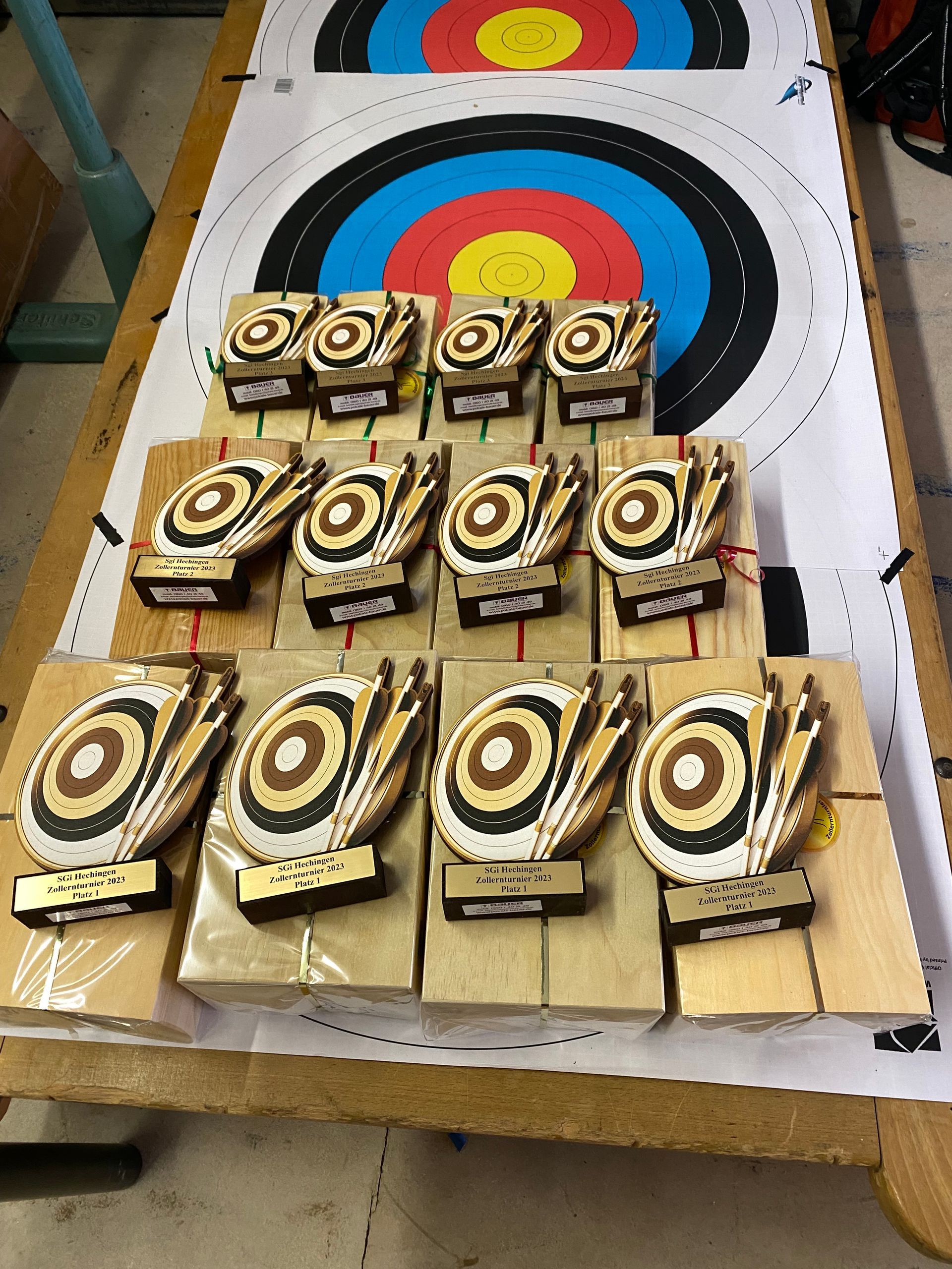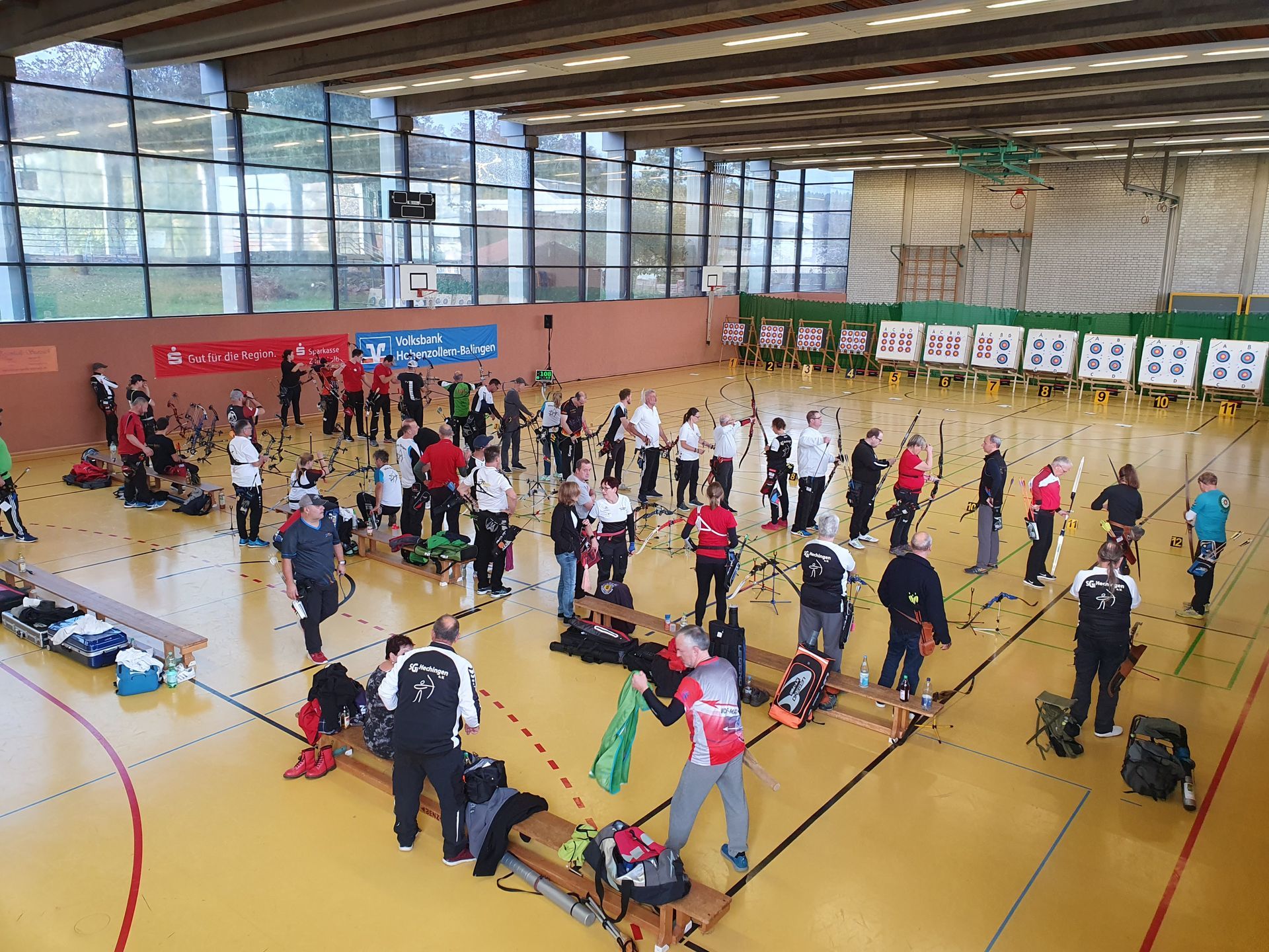 Gleich darauf flogen Probepfeile zum Warm-up und um 9 Uhr startete die erste Qualifikationsrunde. Geschossen wurden zwei Mal 30 Pfeile auf die Hallendistanz von 18 Metern. Gegen 13 Uhr ging es mit der zweiten Runde weiter und nach dem Schlusssignal wurden die Schießergebnisse ausgewertet. Währenddessen hatten die Hechinger Bogenschützen ihre Gäste mit einer Verlosung überrascht, an der jede Startnummer eine Chance auf kleines Souvenir hatte. Sodann erfolgt die Siegerehrung in der Einzelwertung.